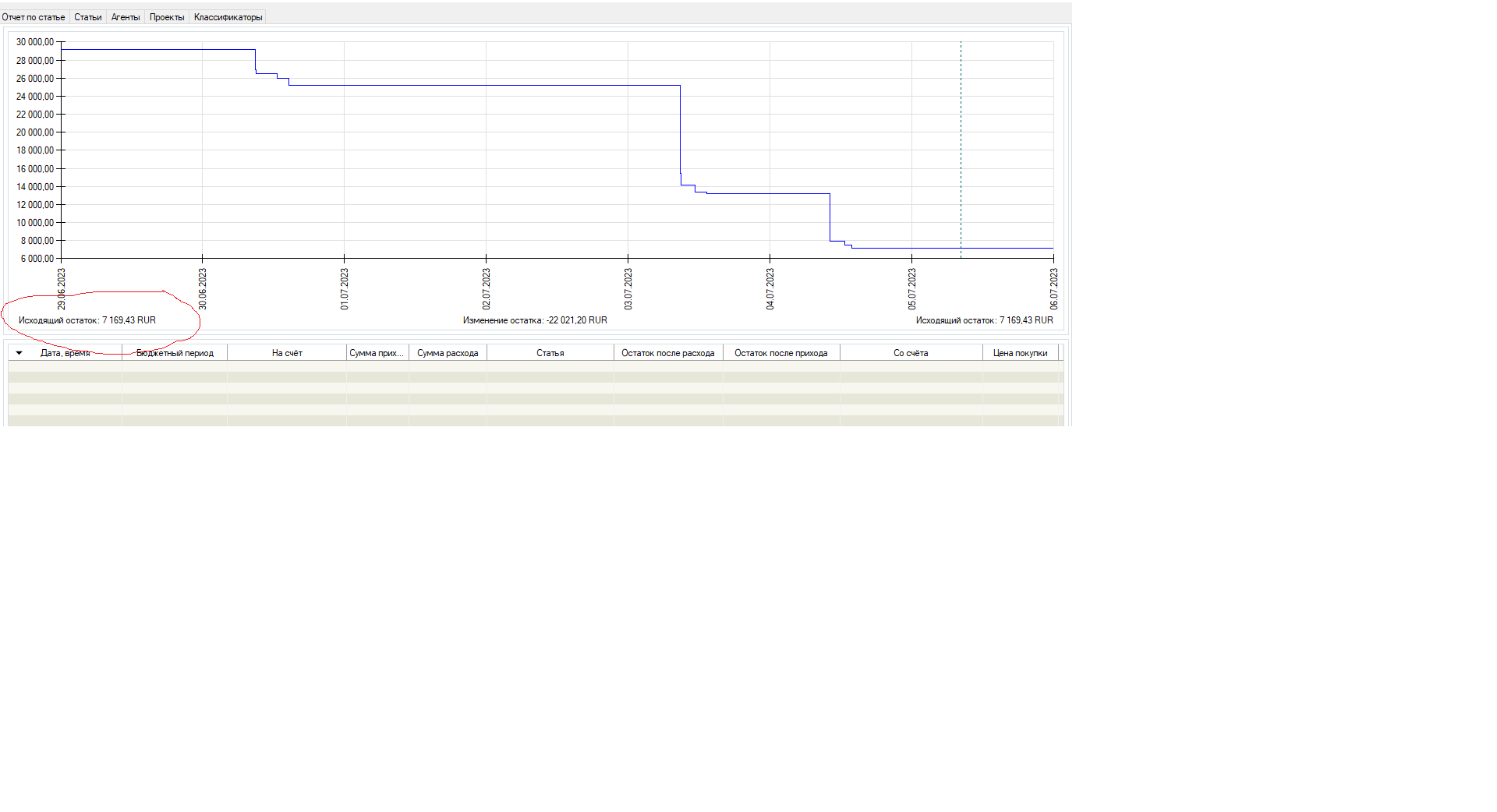 Вместо входящего остатка отображает исходящий остаток как в начале, так и в конце графика.